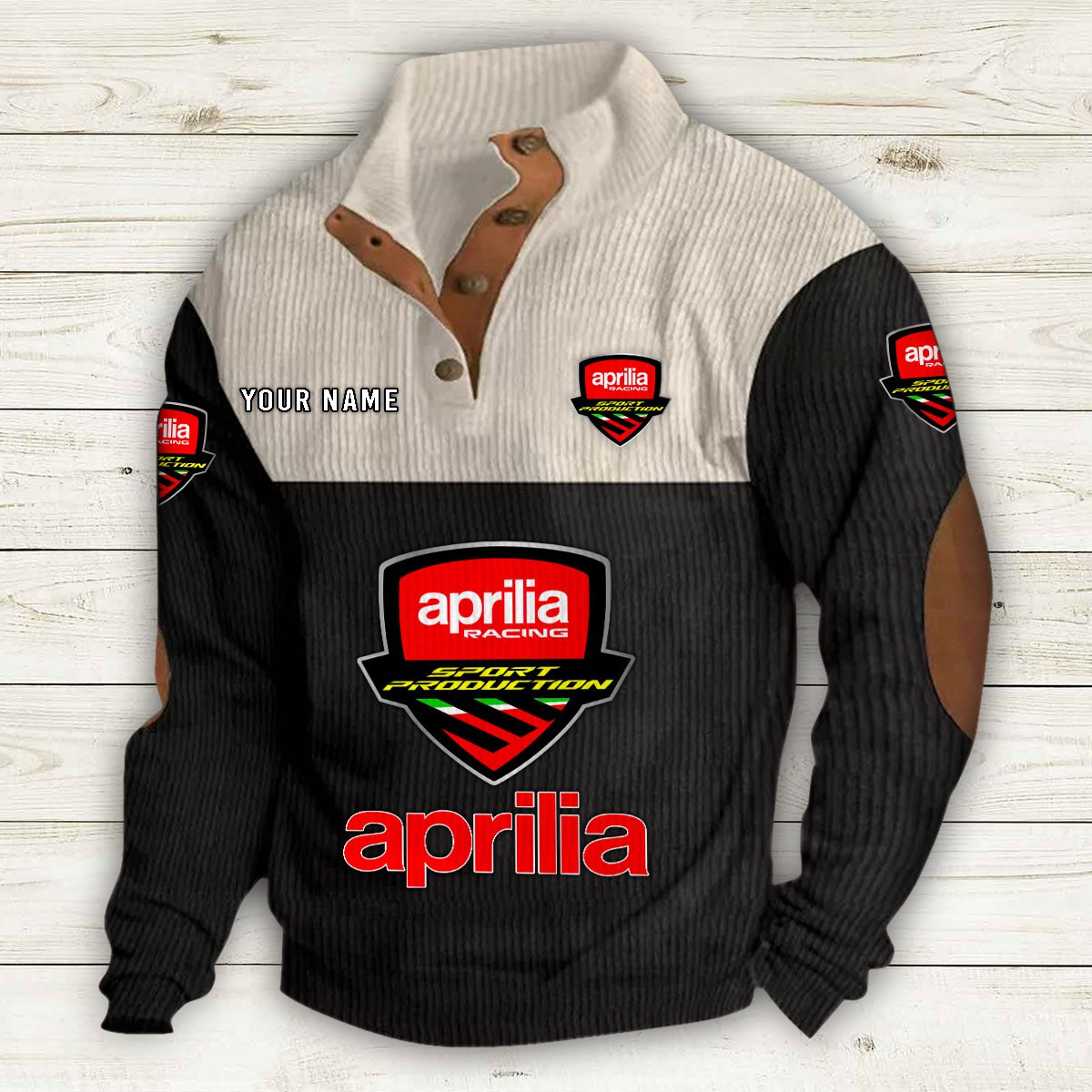 Mit Stehkragen, halber Knopfleiste und stilvollen Details wie Wildleder-Patches an Kragen und Ellbogen bietet er sowohl Komfort als auch Eleganz.