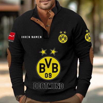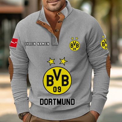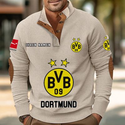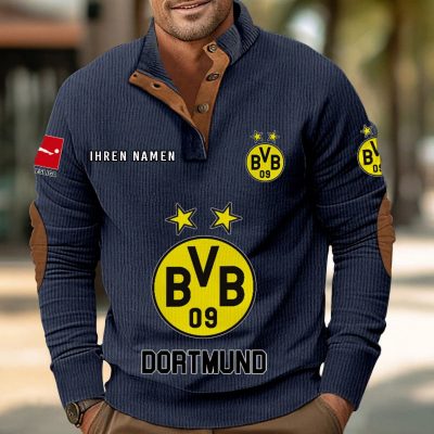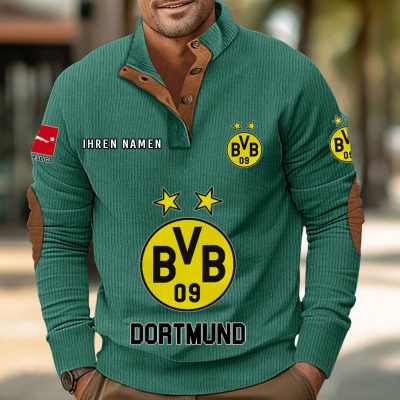 Mit Stehkragen, halber Knopfleiste und stilvollen Details wie Wildleder-Patches an Kragen und Ellbogen bietet er sowohl Komfort als auch Eleganz.