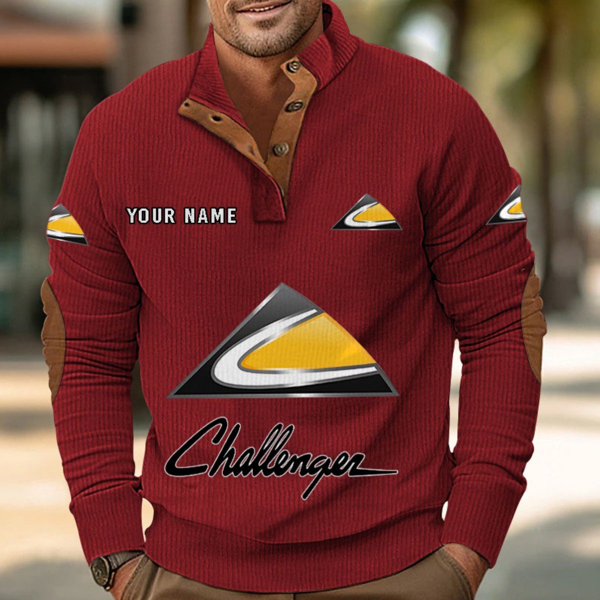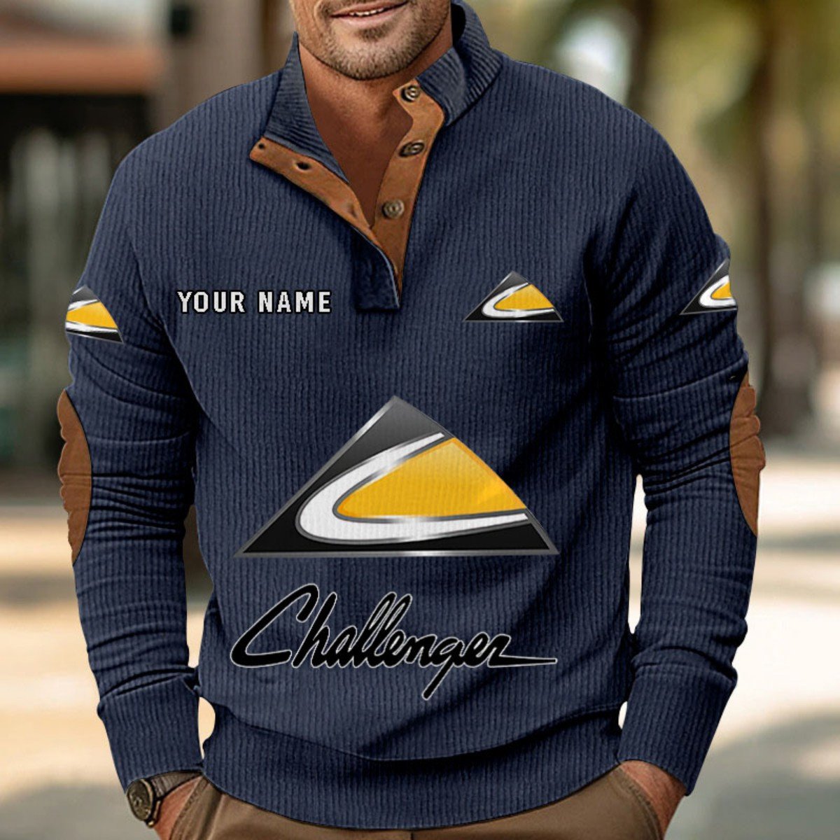 Mit Stehkragen, halber Knopfleiste und stilvollen Details wie Wildleder-Patches an Kragen und Ellbogen bietet er sowohl Komfort als auch Eleganz.