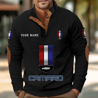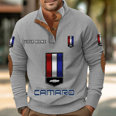 Mit Stehkragen, halber Knopfleiste und stilvollen Details wie Wildleder-Patches an Kragen und Ellbogen bietet er sowohl Komfort als auch Eleganz.