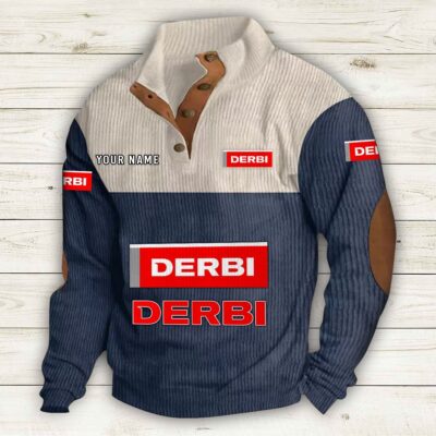 Mit Stehkragen, halber Knopfleiste und stilvollen Details wie Wildleder-Patches an Kragen und Ellbogen bietet er sowohl Komfort als auch Eleganz.