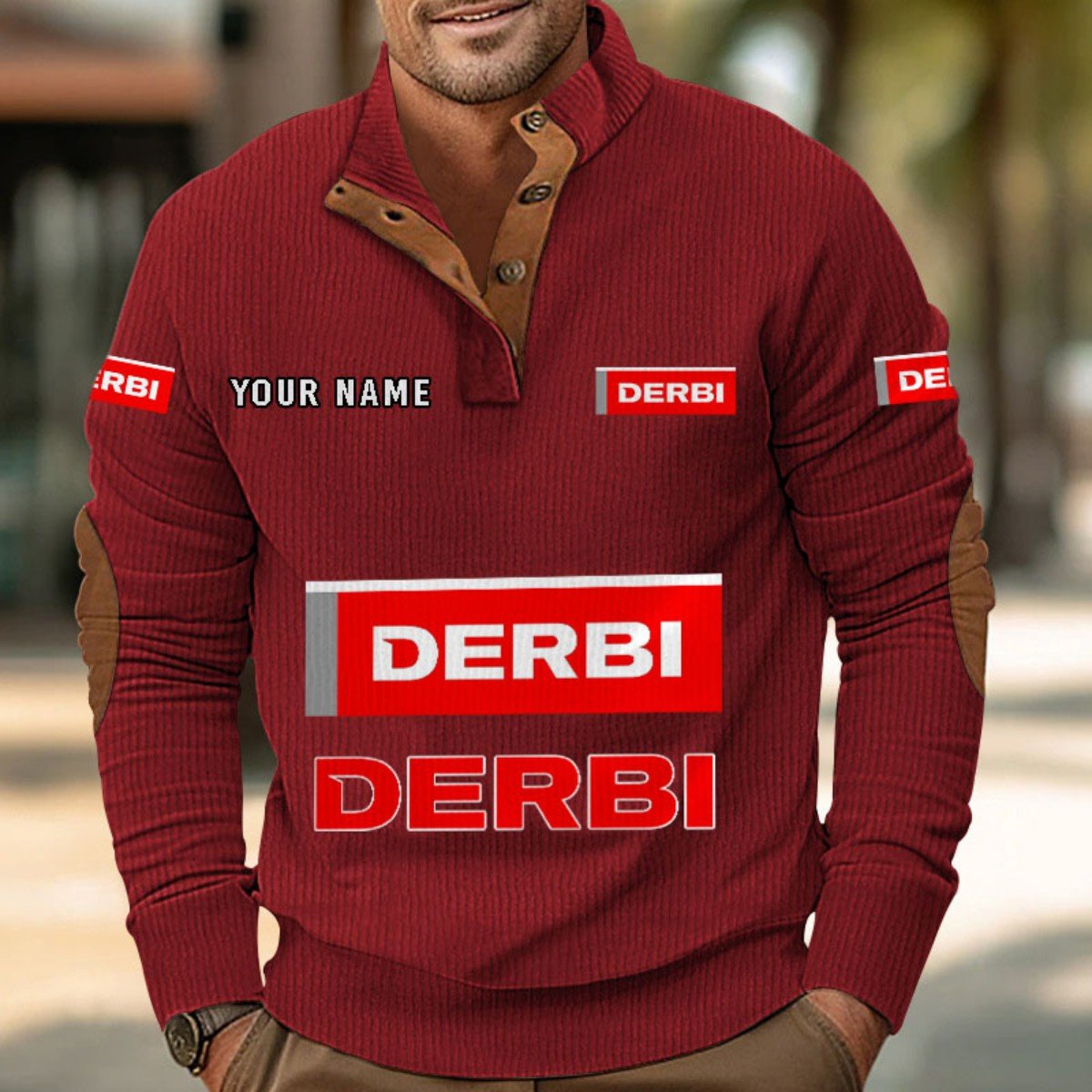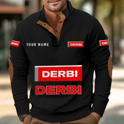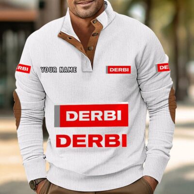 Mit Stehkragen, halber Knopfleiste und stilvollen Details wie Wildleder-Patches an Kragen und Ellbogen bietet er sowohl Komfort als auch Eleganz.