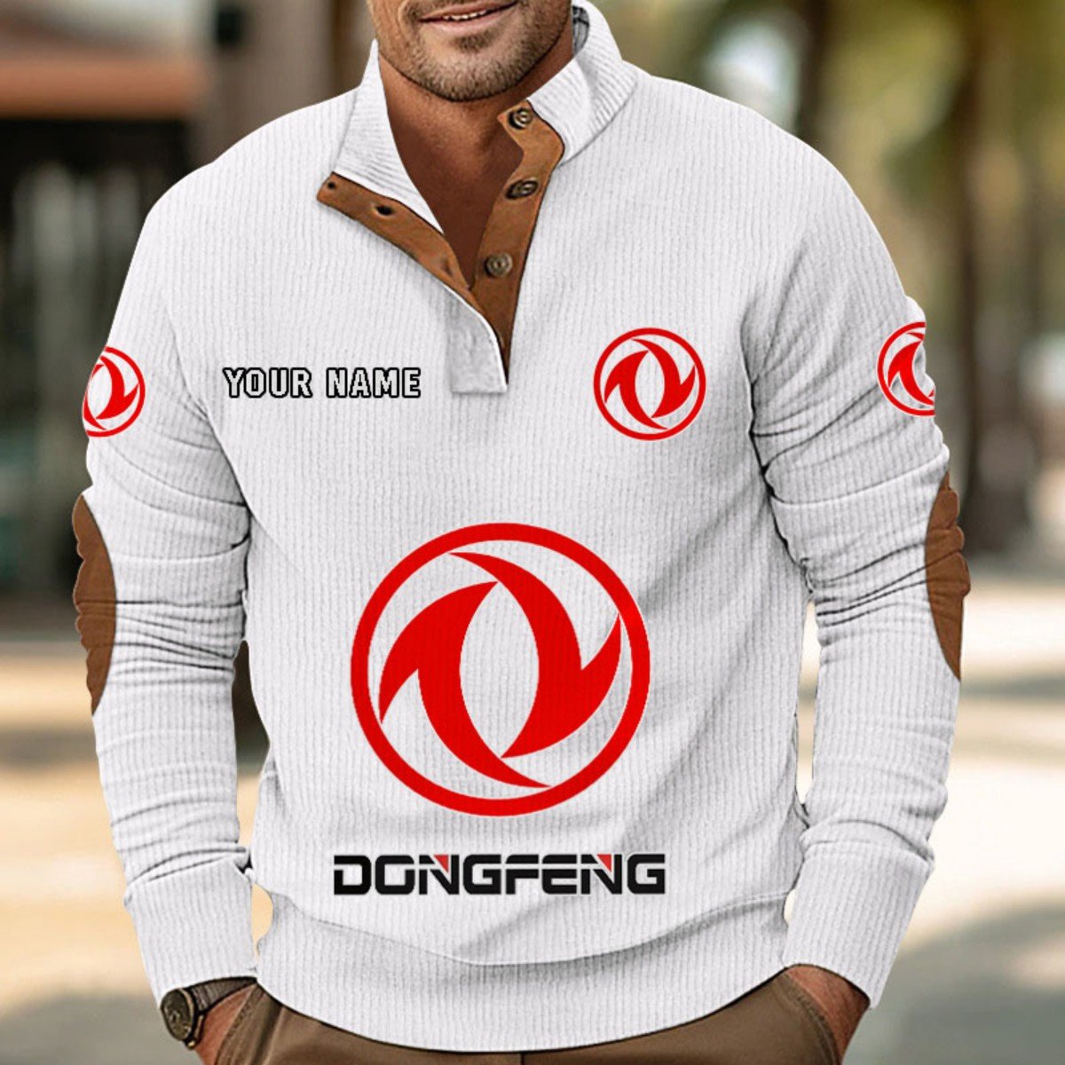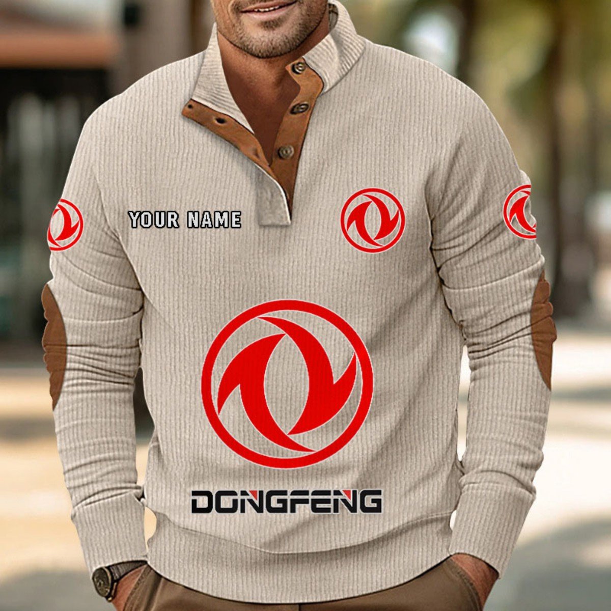 Mit Stehkragen, halber Knopfleiste und stilvollen Details wie Wildleder-Patches an Kragen und Ellbogen bietet er sowohl Komfort als auch Eleganz.
