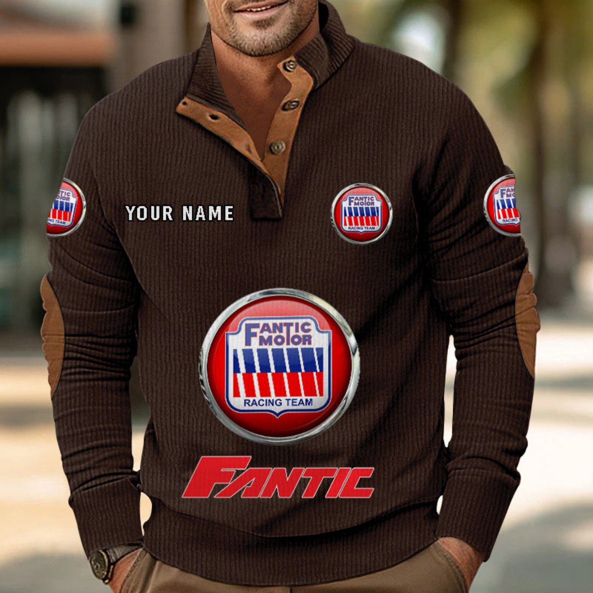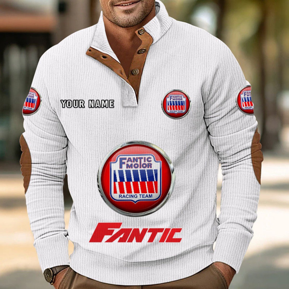 Mit Stehkragen, halber Knopfleiste und stilvollen Details wie Wildleder-Patches an Kragen und Ellbogen bietet er sowohl Komfort als auch Eleganz.