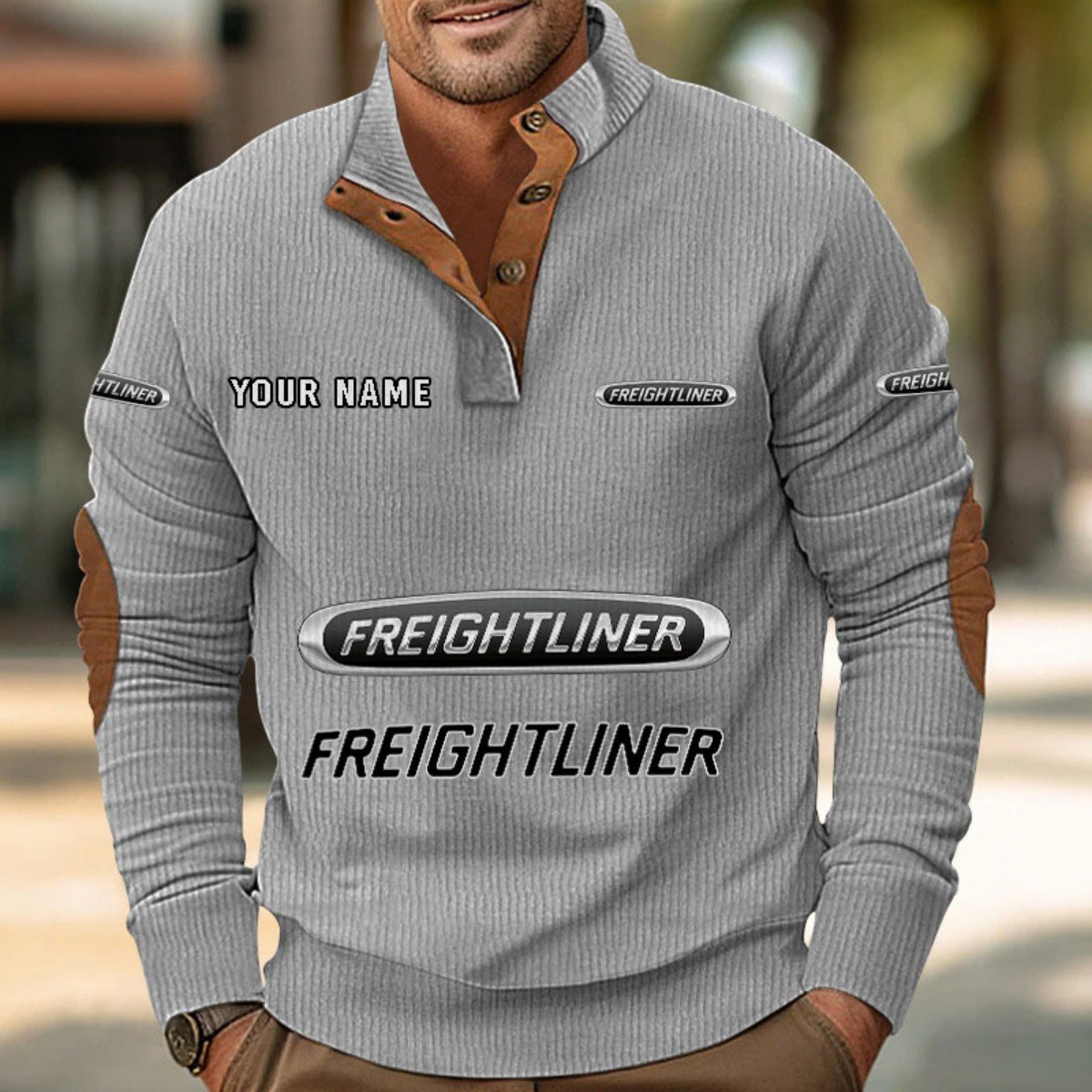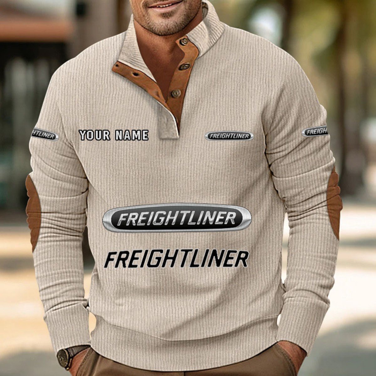 Mit Stehkragen, halber Knopfleiste und stilvollen Details wie Wildleder-Patches an Kragen und Ellbogen bietet er sowohl Komfort als auch Eleganz.