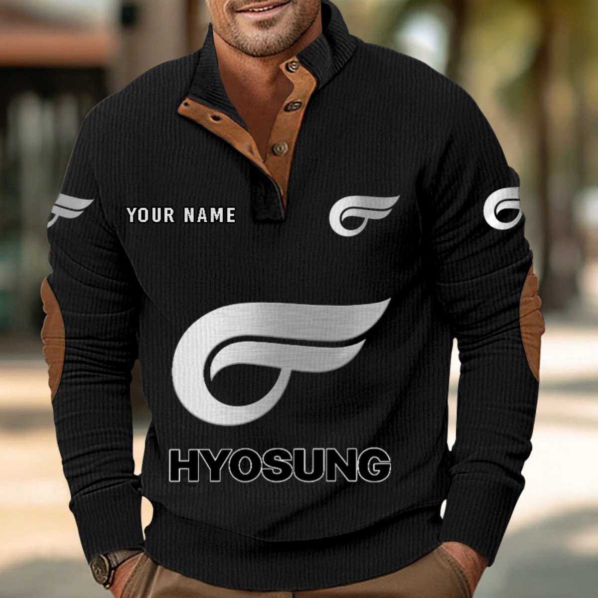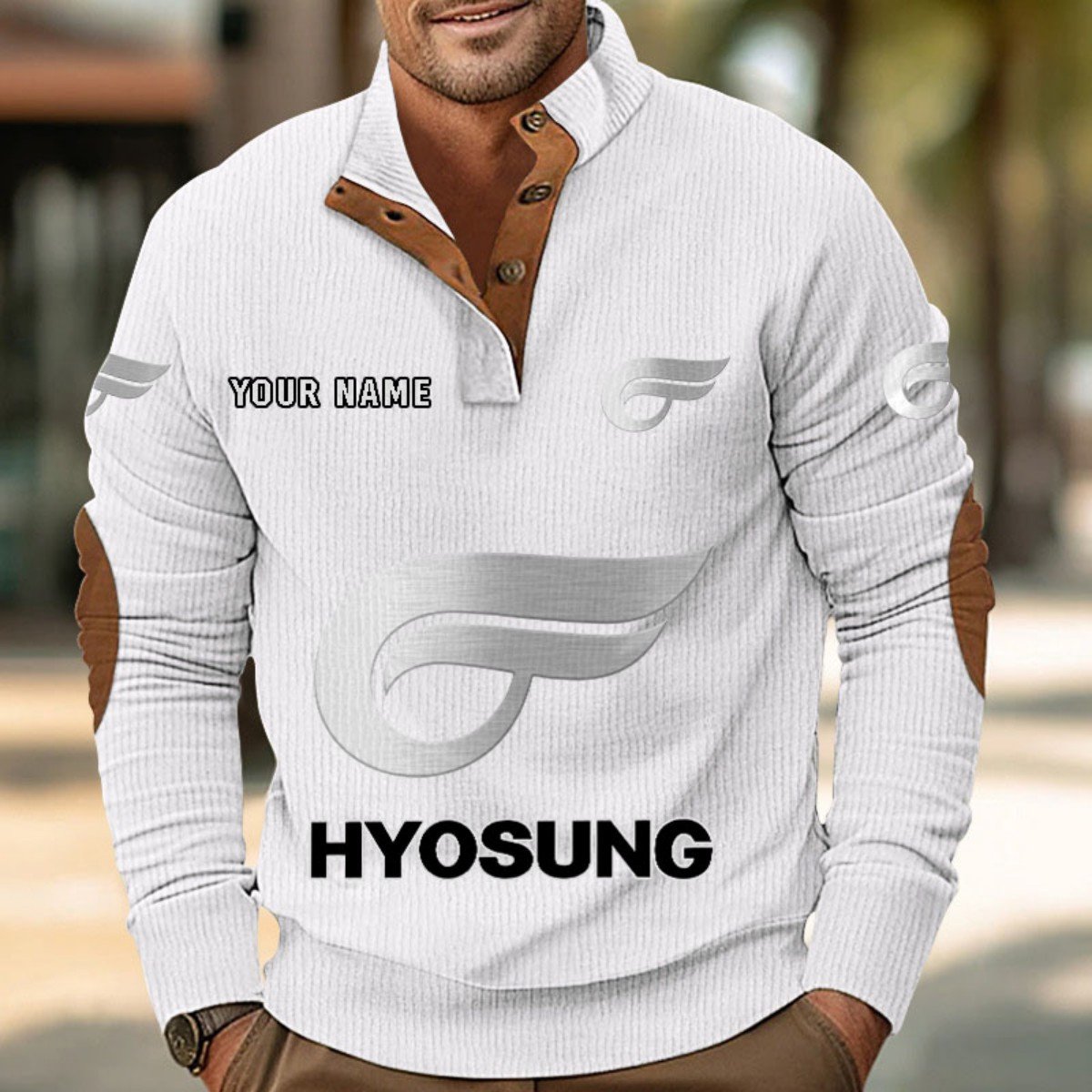 Mit Stehkragen, halber Knopfleiste und stilvollen Details wie Wildleder-Patches an Kragen und Ellbogen bietet er sowohl Komfort als auch Eleganz.