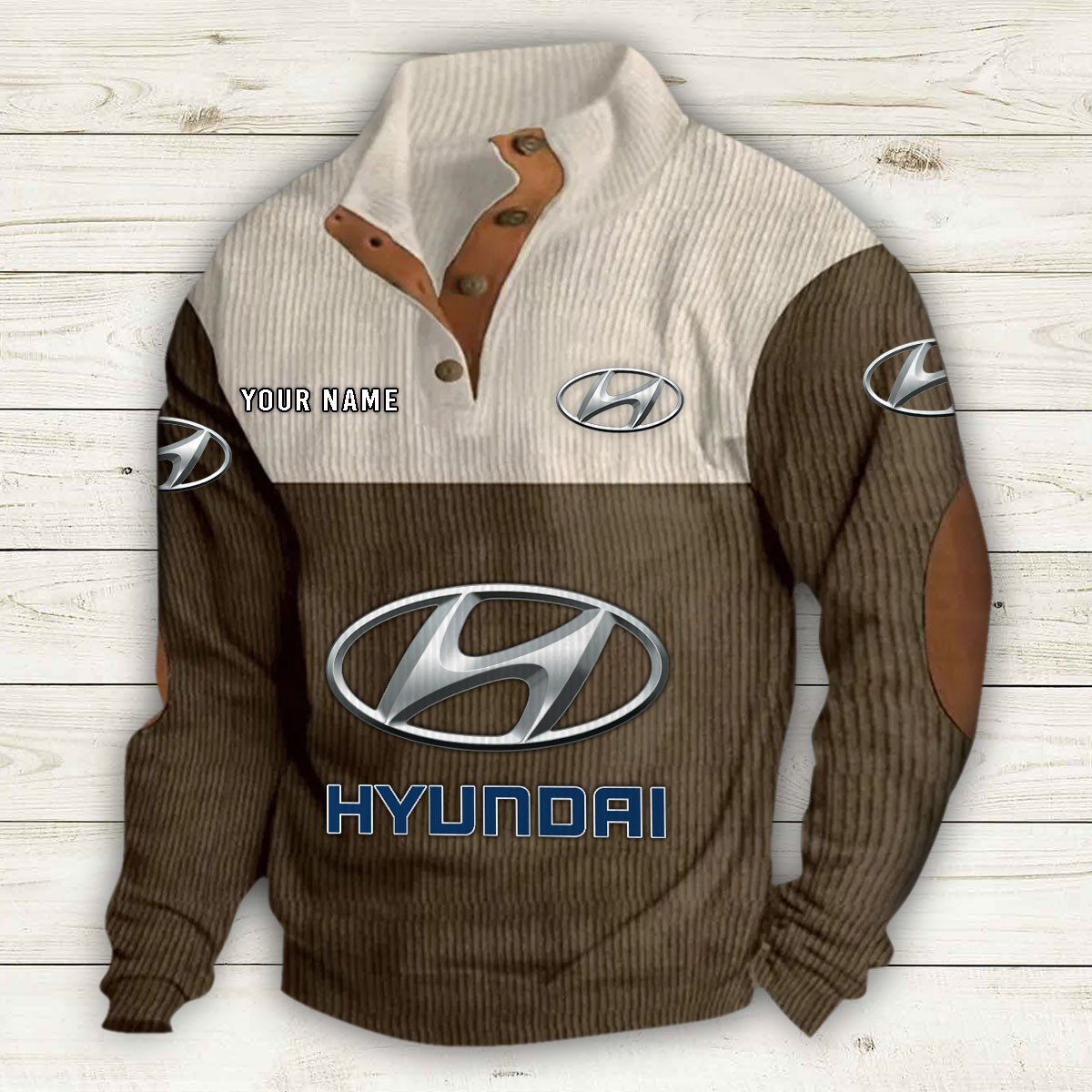 Mit Stehkragen, halber Knopfleiste und stilvollen Details wie Wildleder-Patches an Kragen und Ellbogen bietet er sowohl Komfort als auch Eleganz.