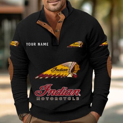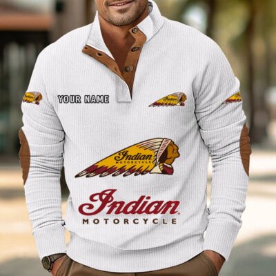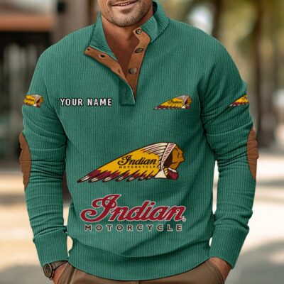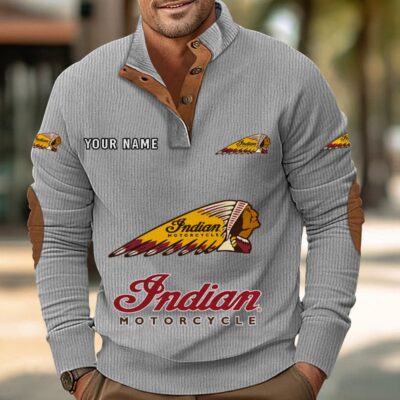 Mit Stehkragen, halber Knopfleiste und stilvollen Details wie Wildleder-Patches an Kragen und Ellbogen bietet er sowohl Komfort als auch Eleganz.