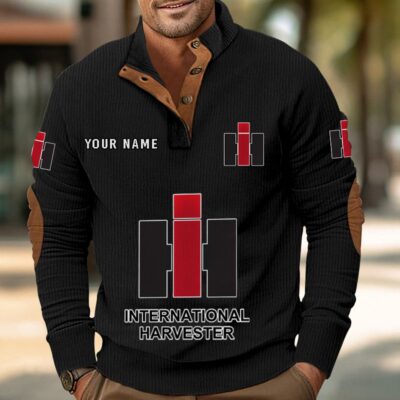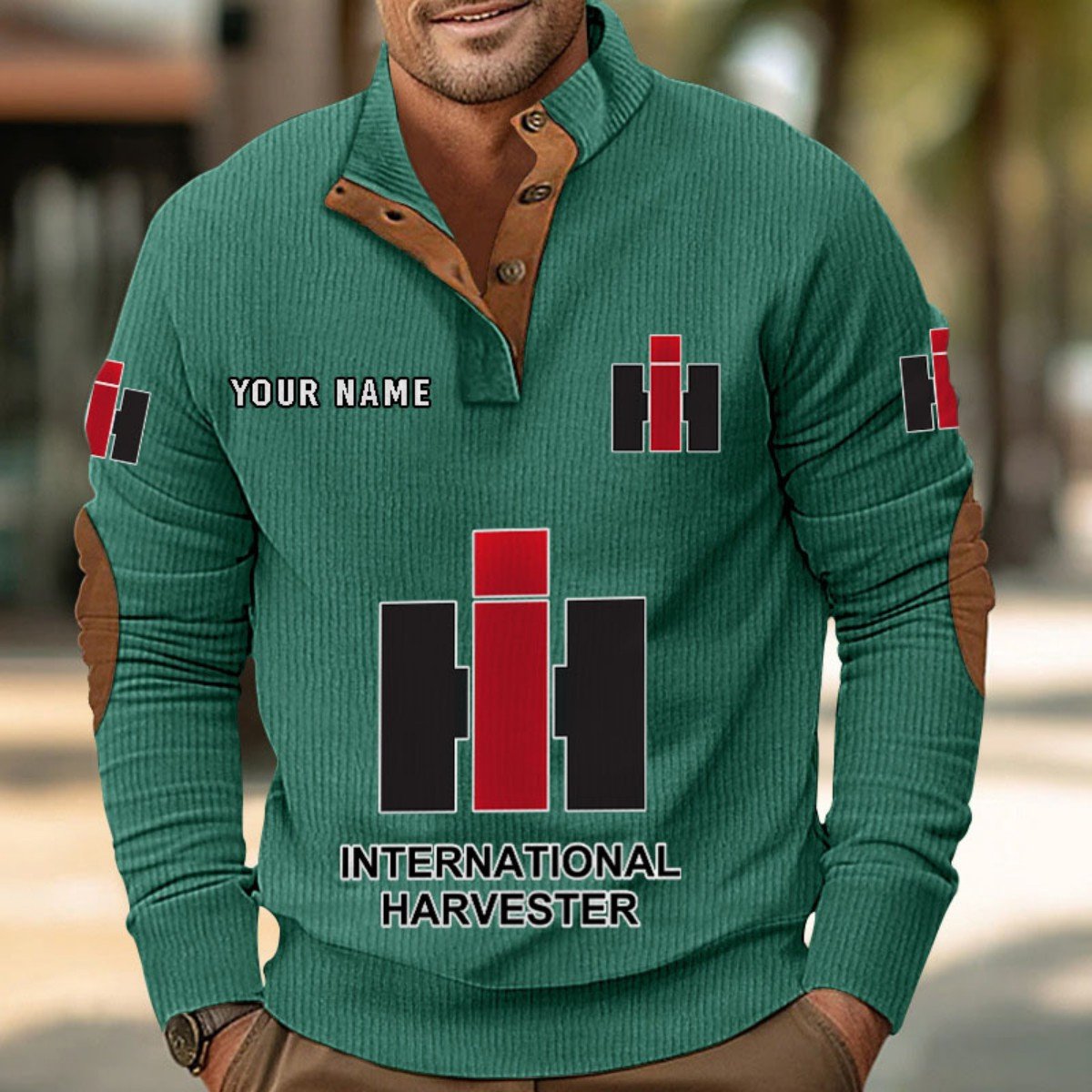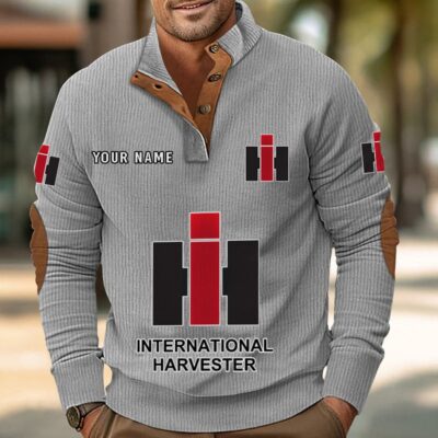 Mit Stehkragen, halber Knopfleiste und stilvollen Details wie Wildleder-Patches an Kragen und Ellbogen bietet er sowohl Komfort als auch Eleganz.
