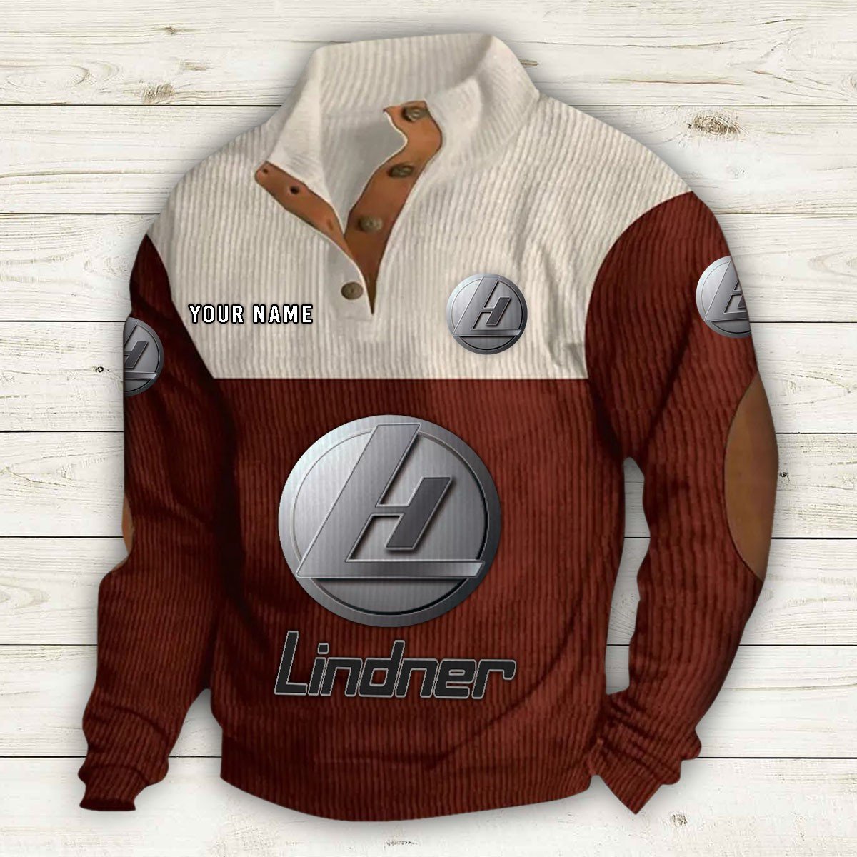 Mit Stehkragen, halber Knopfleiste und stilvollen Details wie Wildleder-Patches an Kragen und Ellbogen bietet er sowohl Komfort als auch Eleganz.