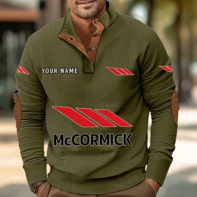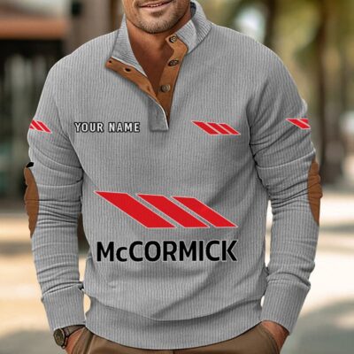 Mit Stehkragen, halber Knopfleiste und stilvollen Details wie Wildleder-Patches an Kragen und Ellbogen bietet er sowohl Komfort als auch Eleganz.