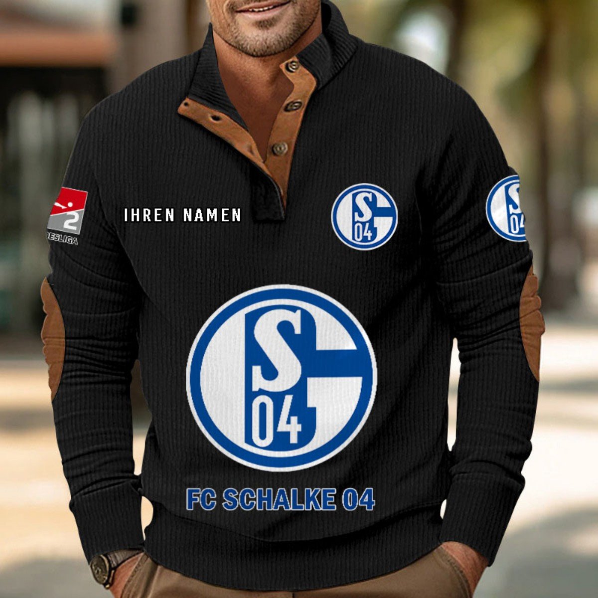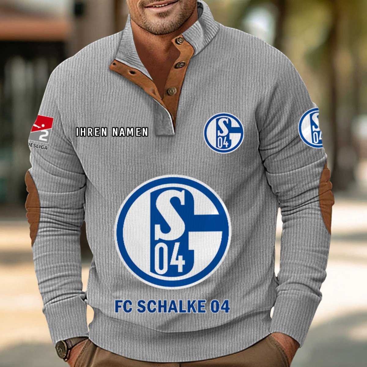 Mit Stehkragen, halber Knopfleiste und stilvollen Details wie Wildleder-Patches an Kragen und Ellbogen bietet er sowohl Komfort als auch Eleganz.