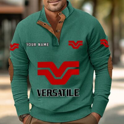 Mit Stehkragen, halber Knopfleiste und stilvollen Details wie Wildleder-Patches an Kragen und Ellbogen bietet er sowohl Komfort als auch Eleganz.