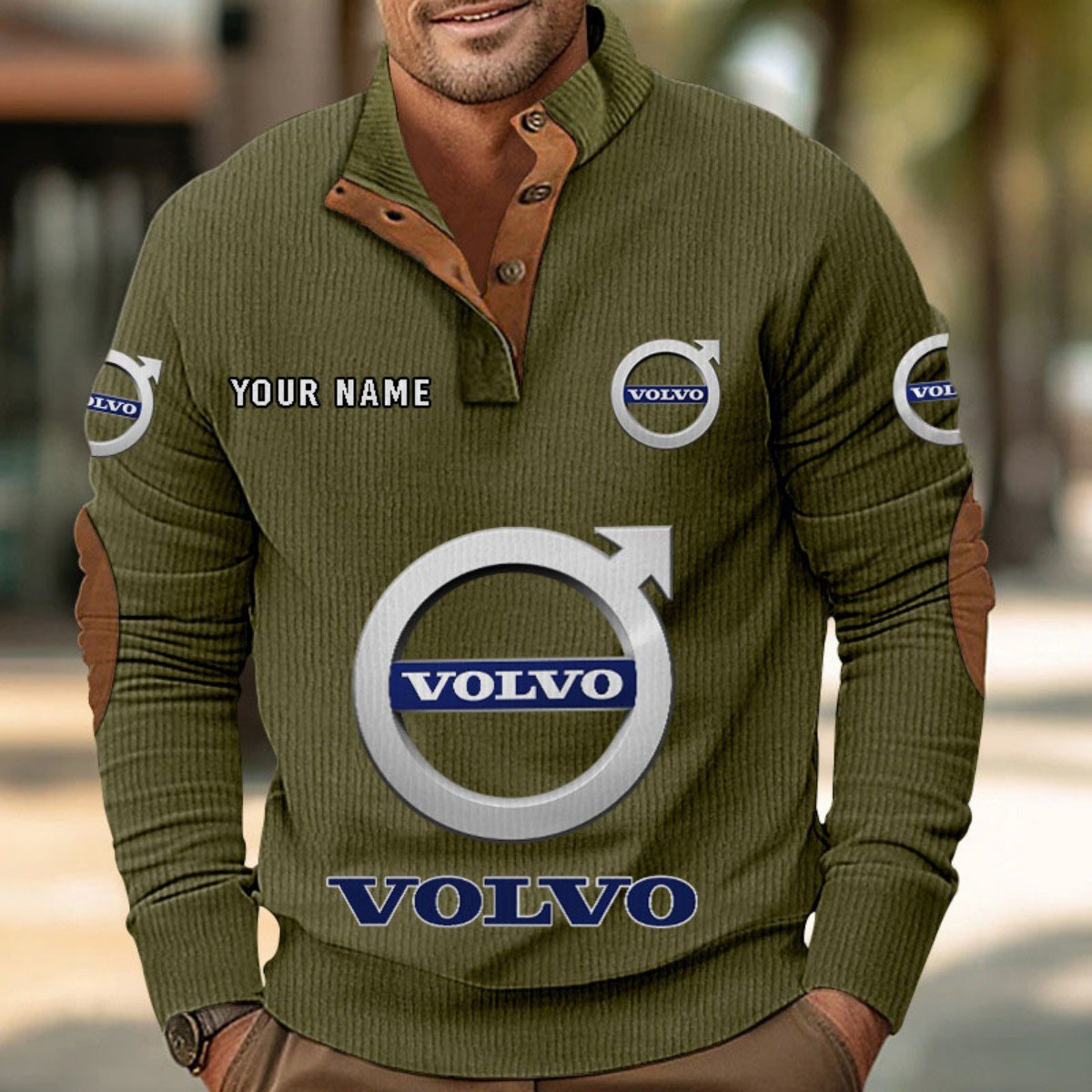 Mit Stehkragen, halber Knopfleiste und stilvollen Details wie Wildleder-Patches an Kragen und Ellbogen bietet er sowohl Komfort als auch Eleganz.