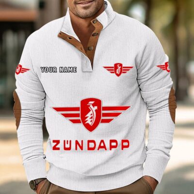 Mit Stehkragen, halber Knopfleiste und stilvollen Details wie Wildleder-Patches an Kragen und Ellbogen bietet er sowohl Komfort als auch Eleganz.